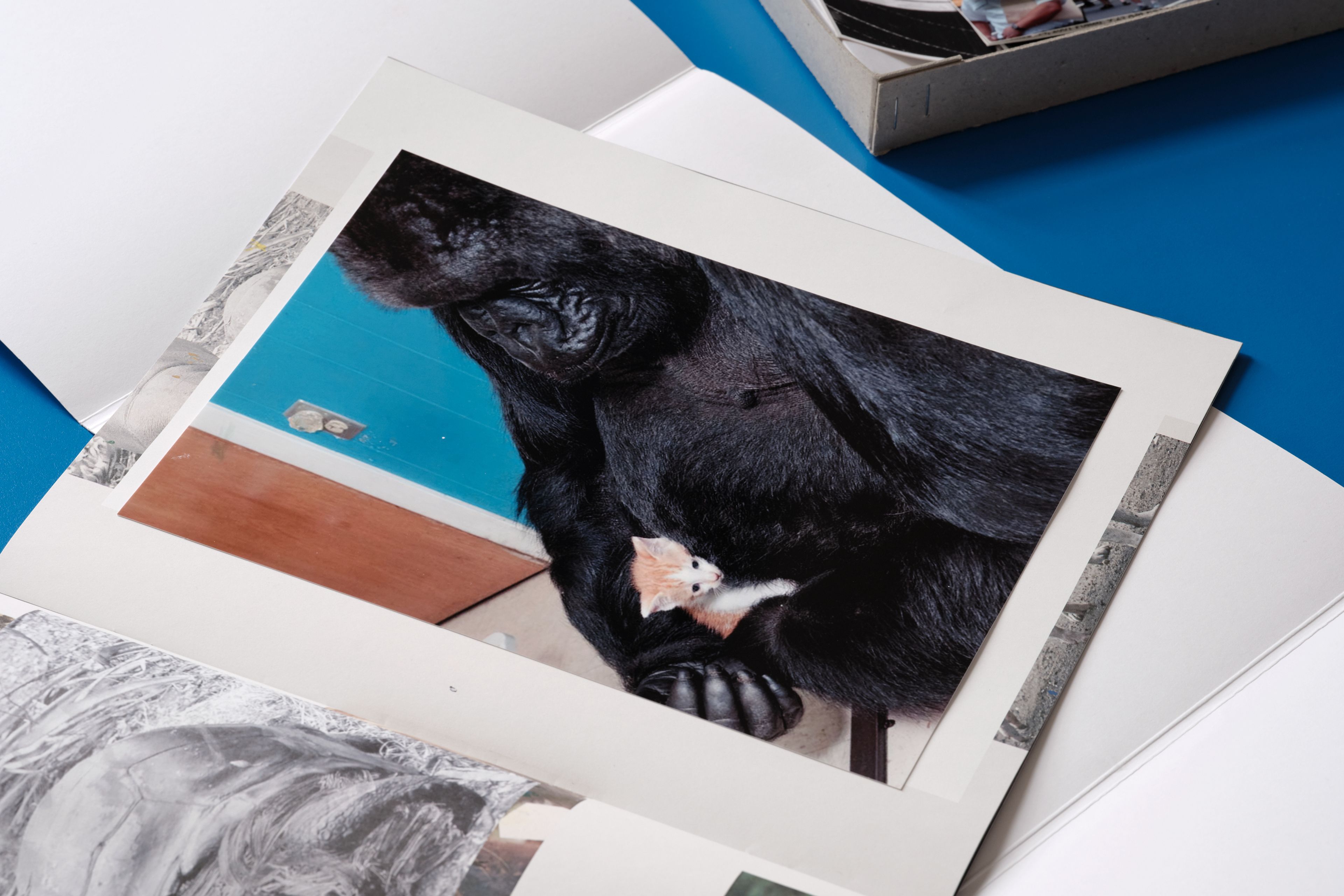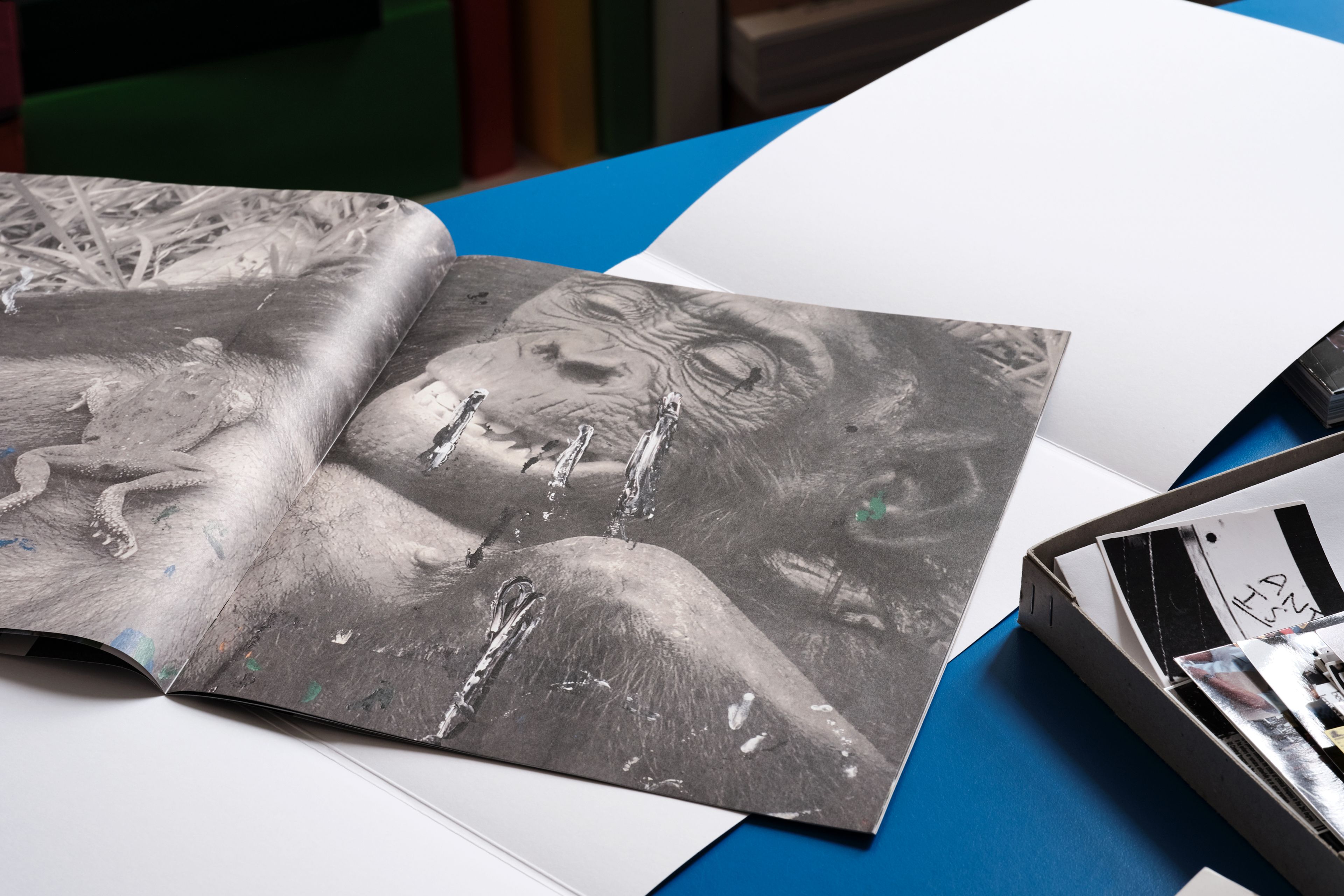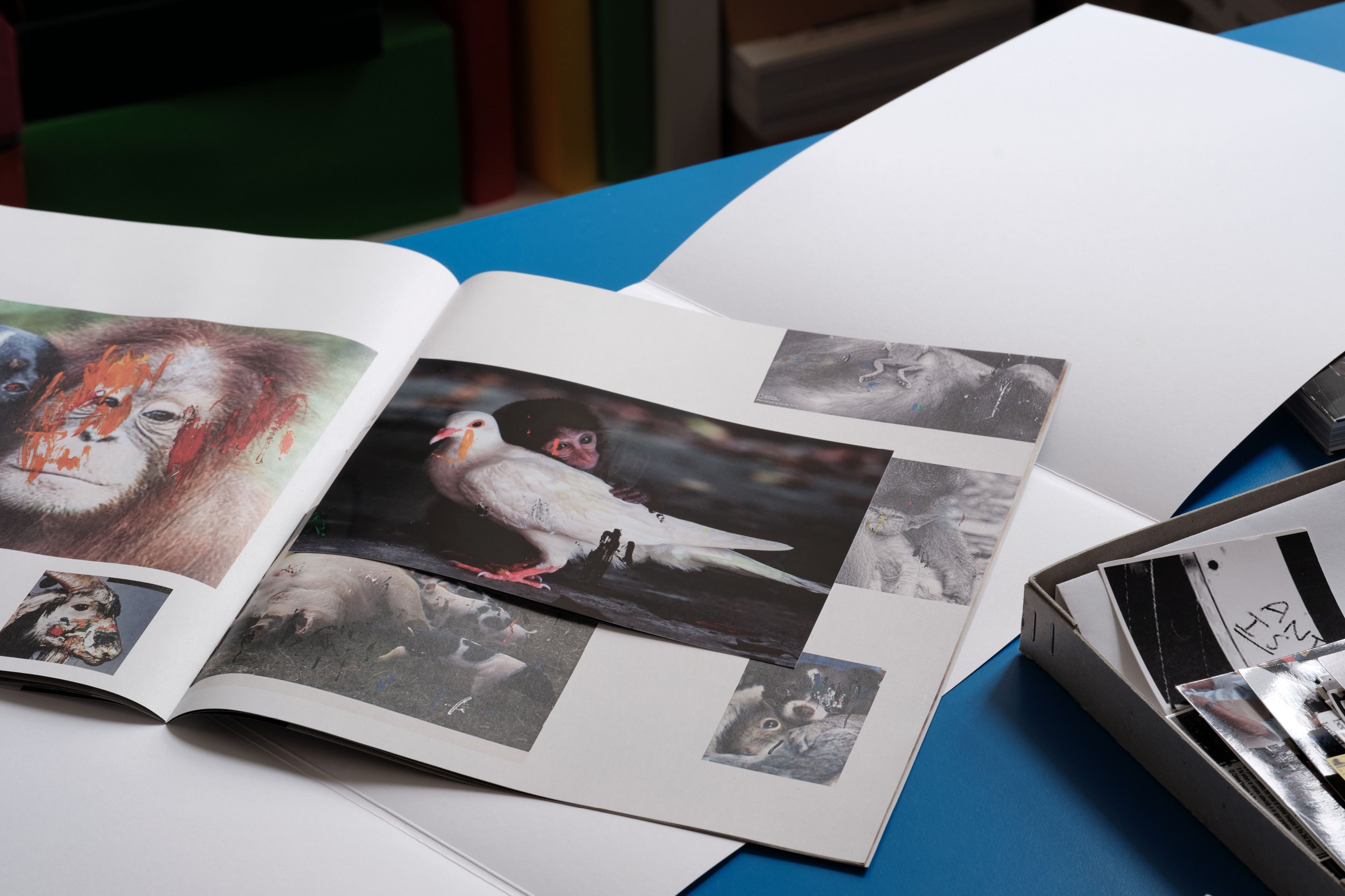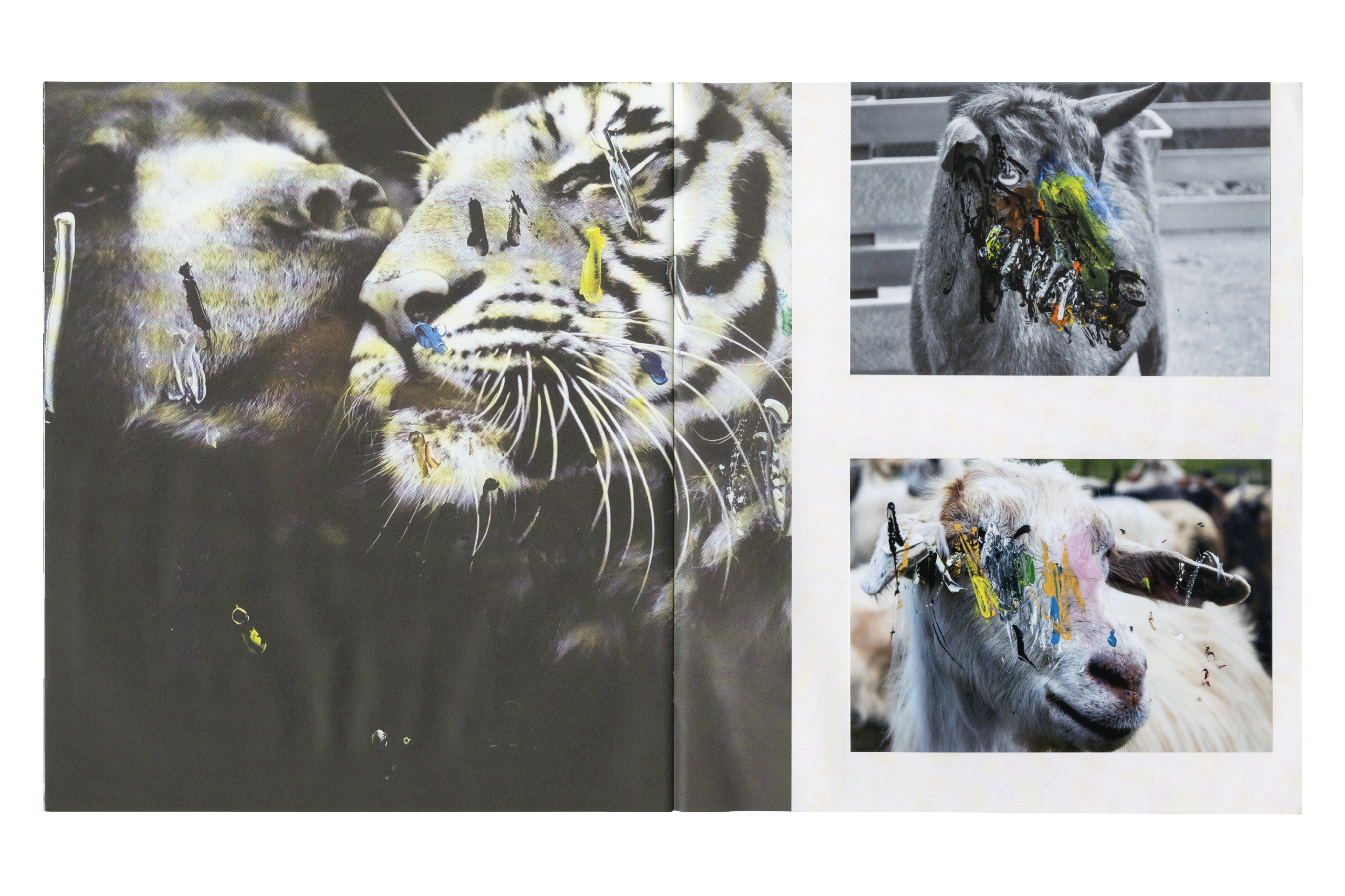 Printed on a lightweight, soft, ink-absorbing paper stock, these images are then partially overlaid with hand collaged tip-ins. The resulting publication, a cobbling together of non-harmonious agencies, is both rigid and soft, out of focus and sharp, tender and frenzied.