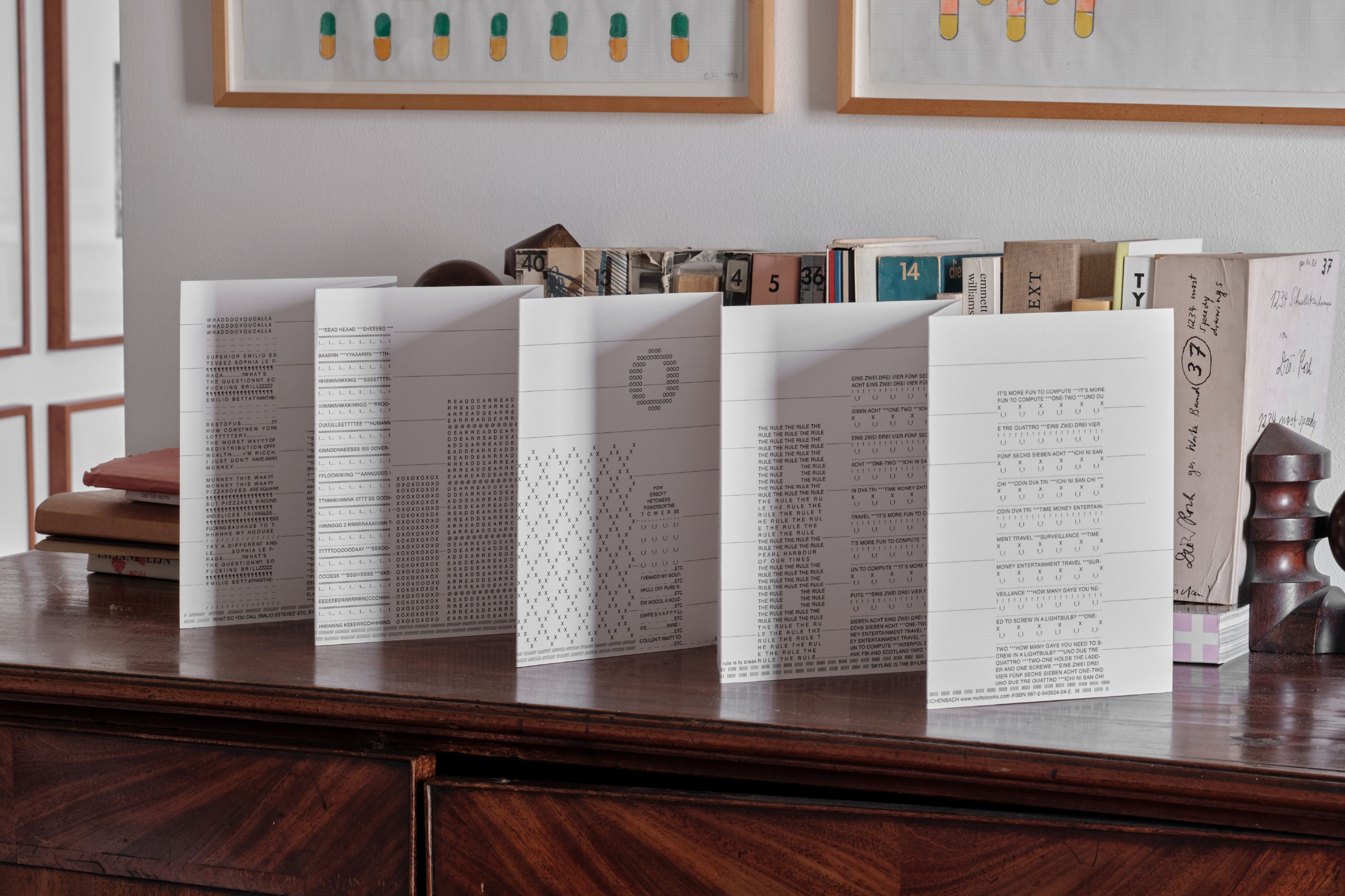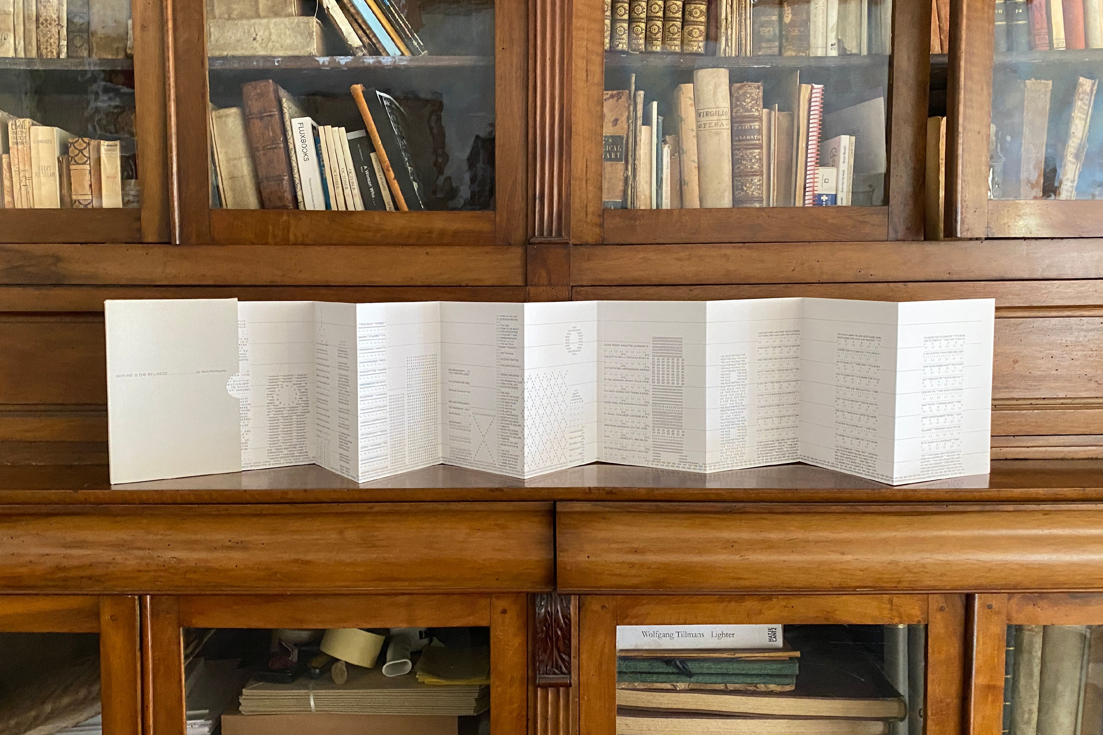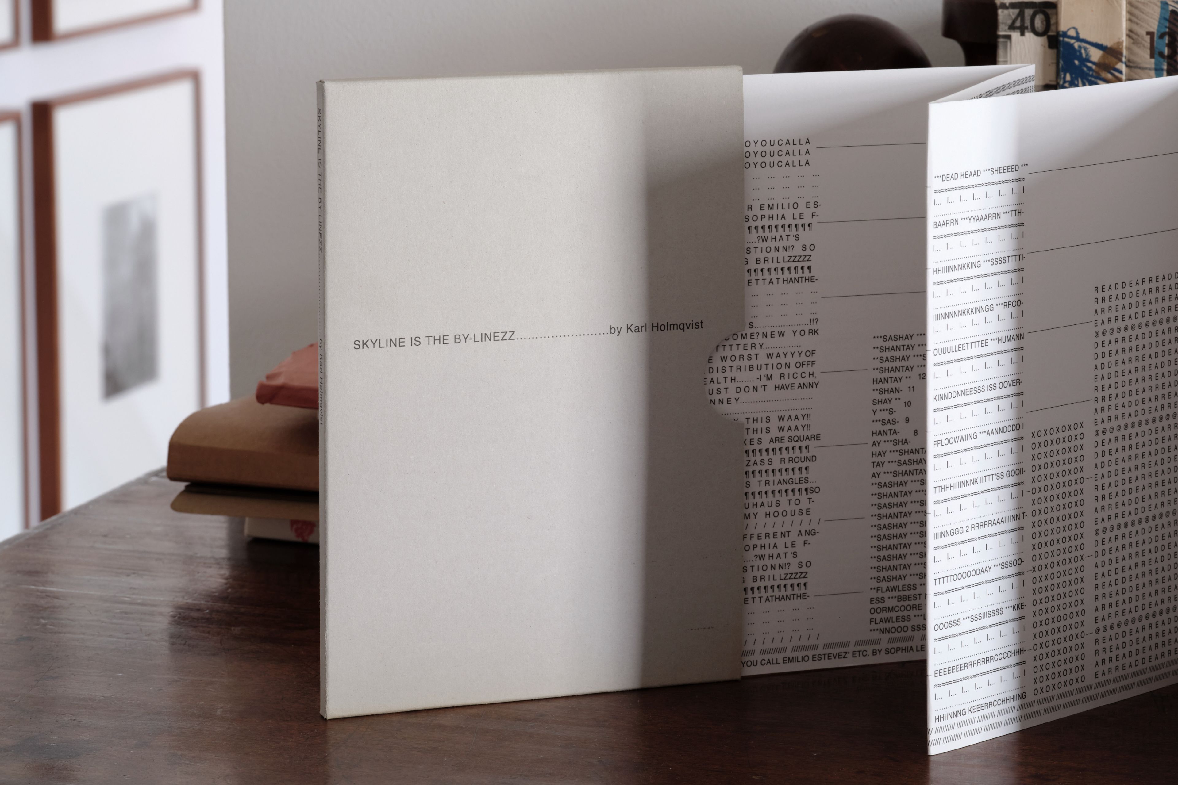 A snake of a book. Extending for 150 cm when unfolded, ‘SKYLINE IS THE BY-LINEZZ’ presents a double portrait of New York’s iconic skyline crafted through the gossip, pronouncements, slogans, banalities, and songs that animate the city that never sleeps.