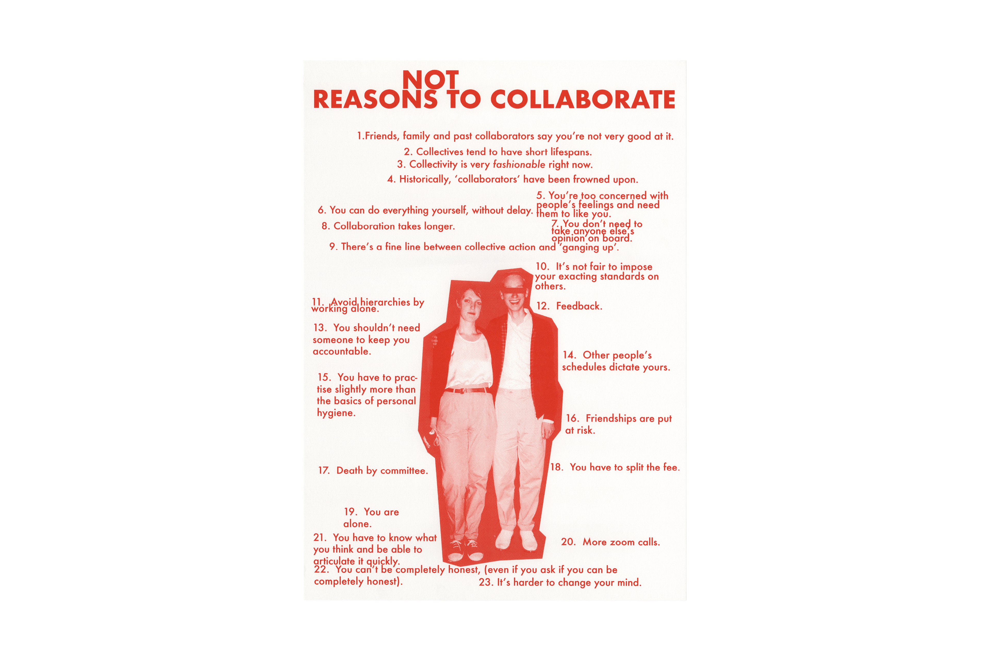In response to a request to collaborate, Fudakowski responded with ‘doubtful doing’, a term she has developed specifically for this sentence and the next. Doubtful doing, is a meta-method or mechanism allowing the artist to both ‘do’ and ‘not do’ at the same time.