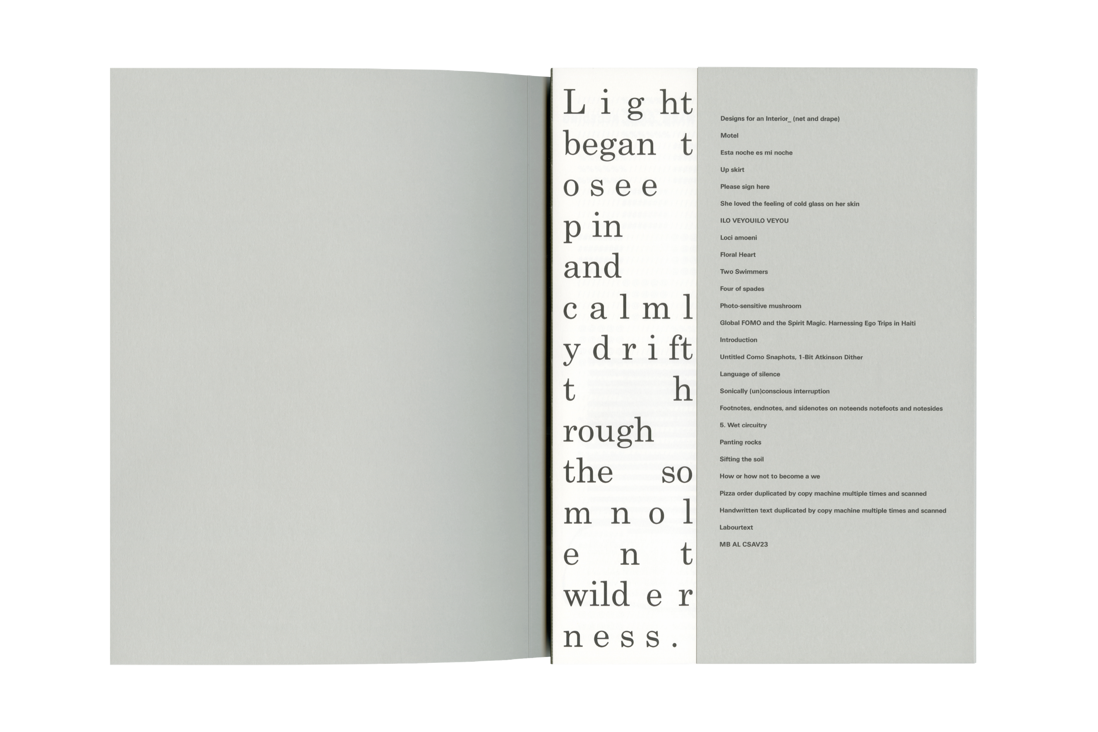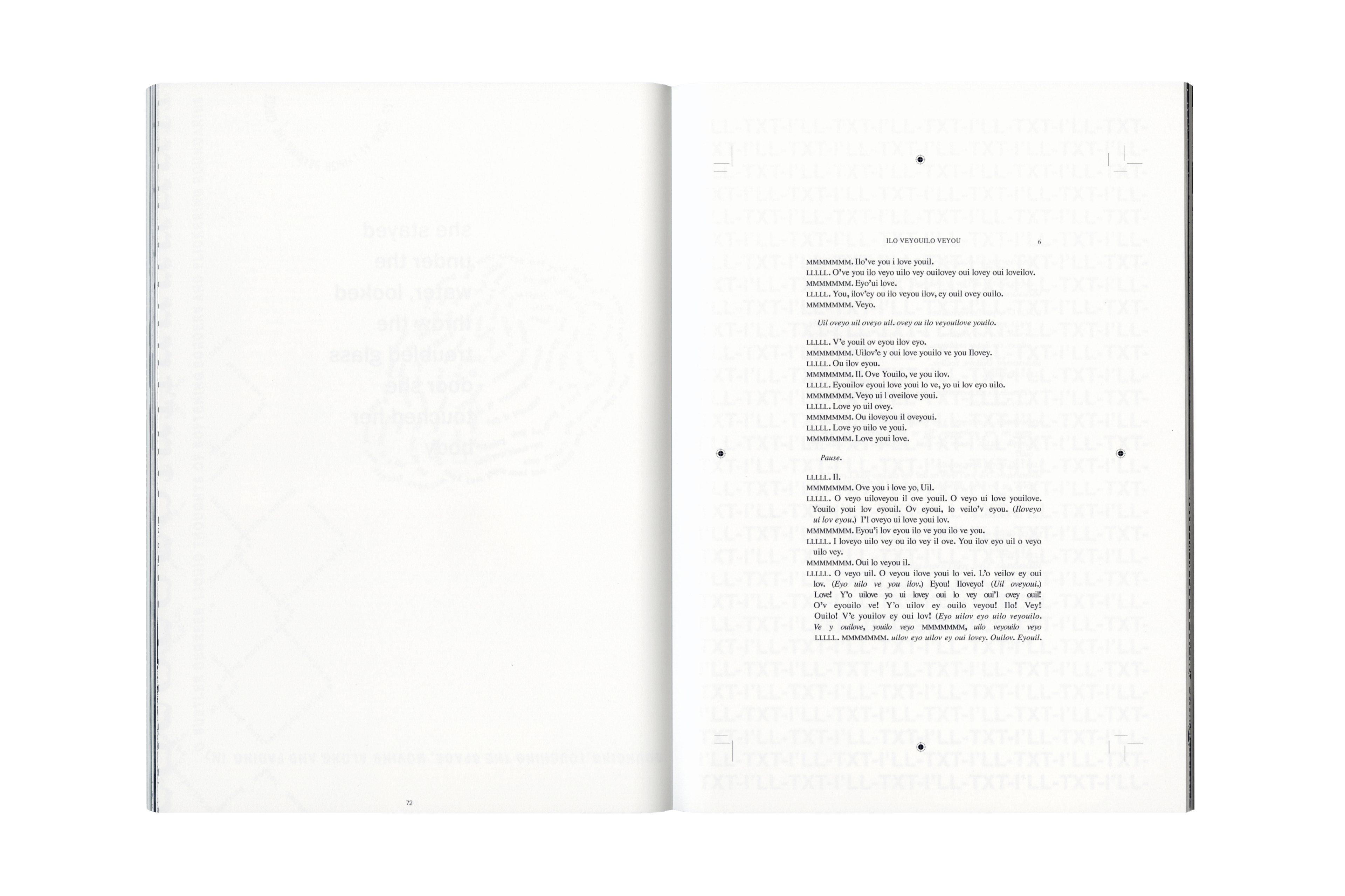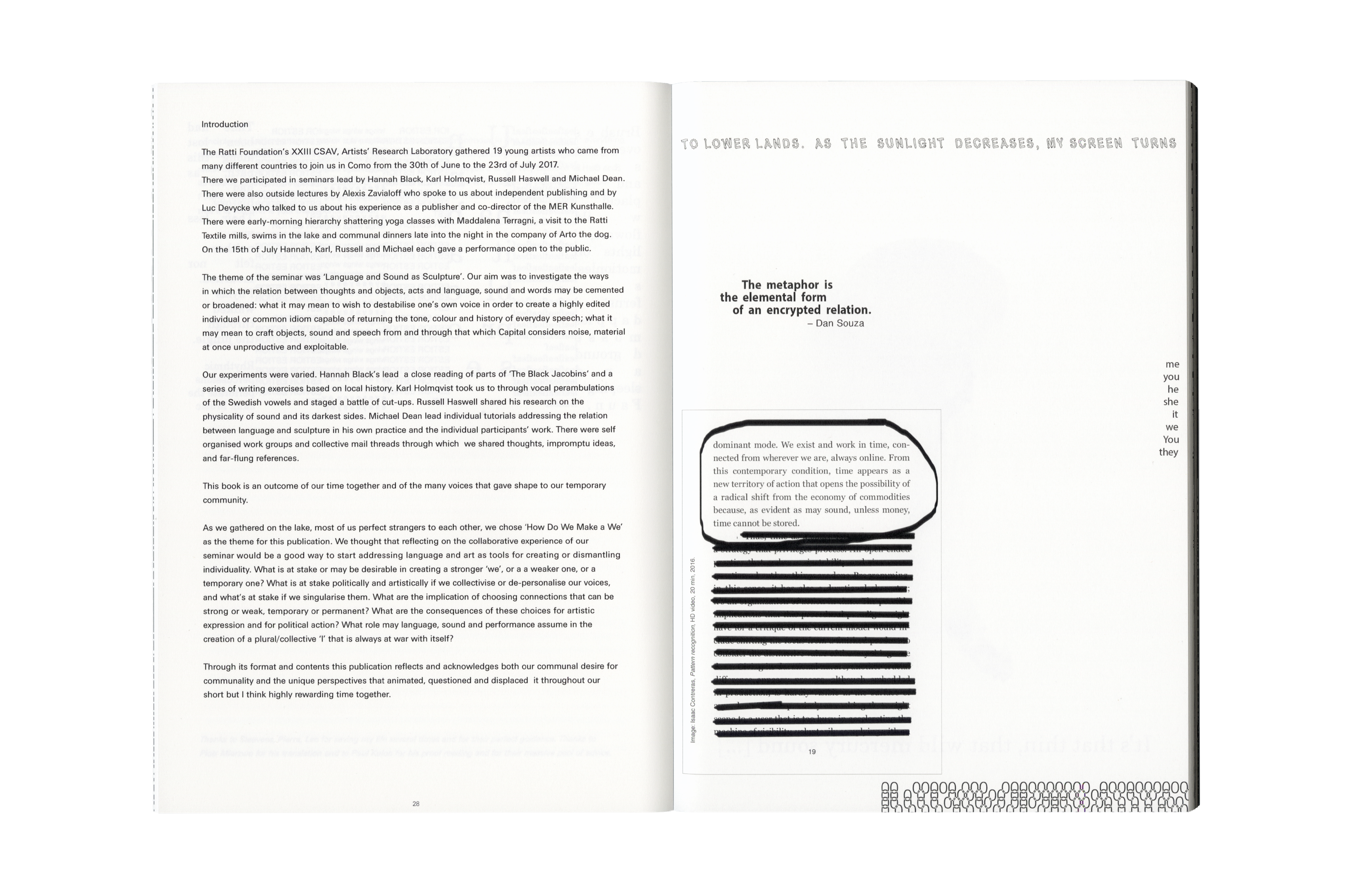 A book about language as sculpture. Visual, aural, and typographic experiments created by the participants in ‘Language as Sculpture’ the Fondazione Antonio Ratti’s ‘XXIII CSAV artists’ research laboratory’.